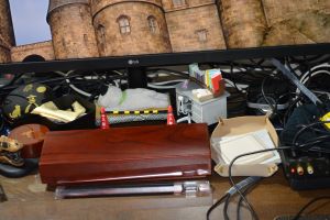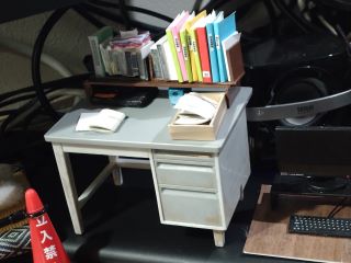 棚の上には教室の机と椅子