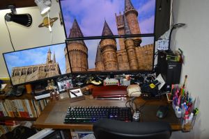 パソコンのモニタは3台で広々。
